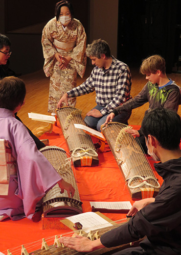 他の公演を楽しみ、それらの楽器や舞踊に加えて、落語と茶の湯の体験・発表を楽しんでいただきました。。